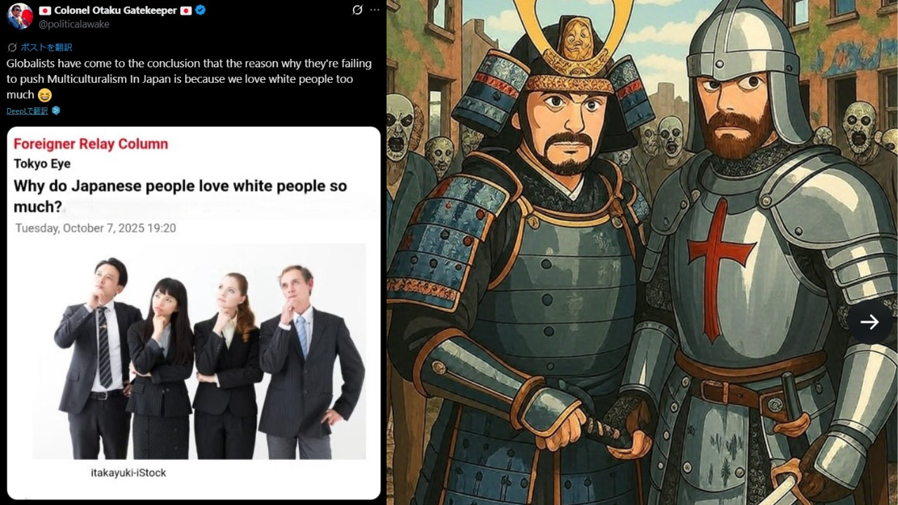 「グローバリストは、日本で多文化主義の推進に失敗している理由を、私たちが白人を愛しすぎているからだと結論付けました」