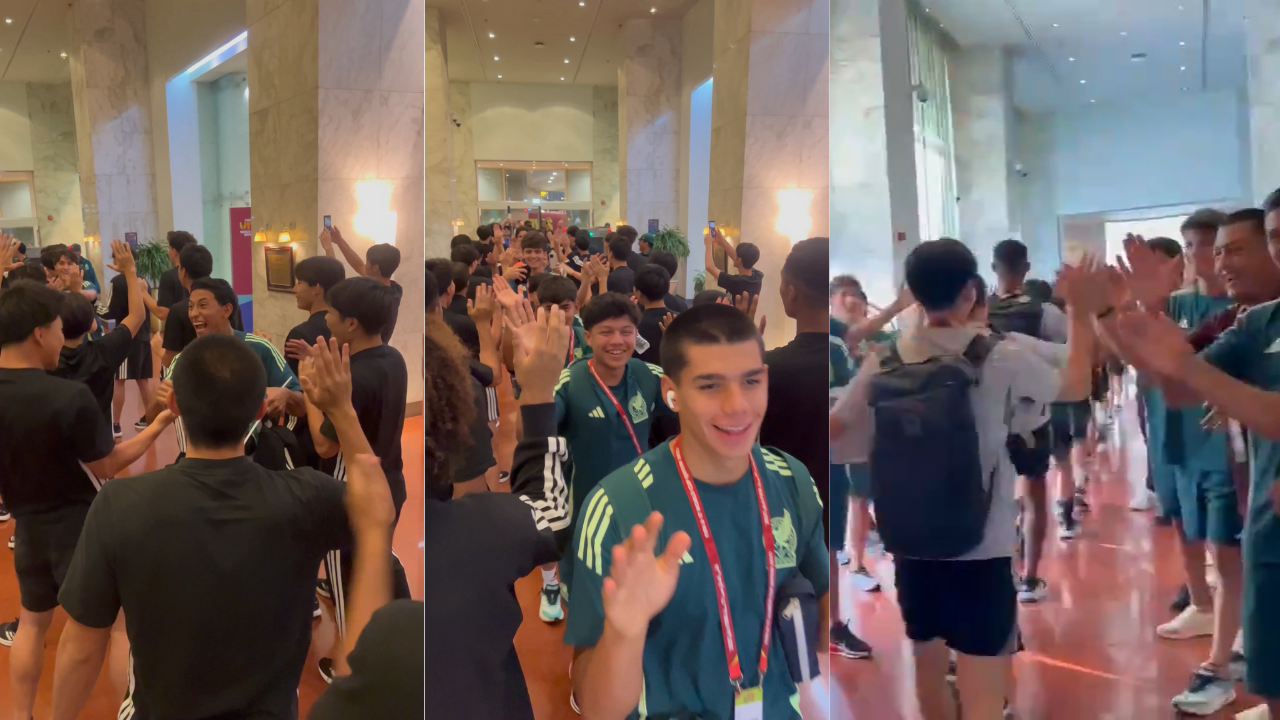 ことの始まりは11月6日のことでした。グループリーグの試合へ向かうU-17日本代表を、同じホテルに宿泊するメキシコ代表の選手たちが、通路の両脇に並び、ハイタッチで激励したのです。