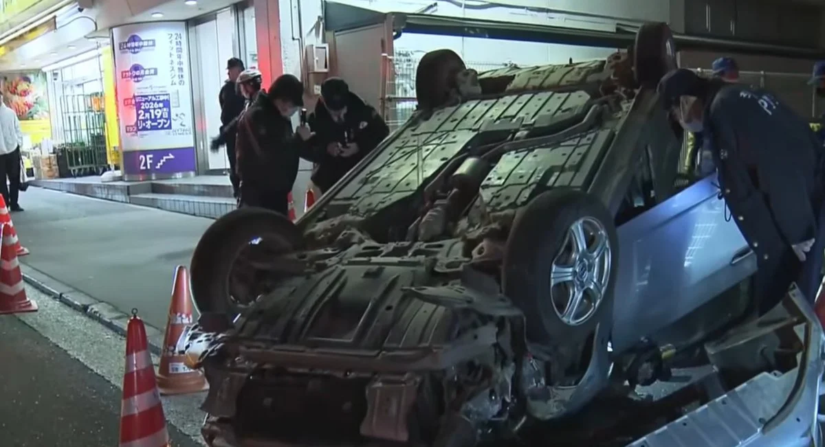 追突事故を起こした車が横転し、乗っていた二人の人物がそのまま現場から逃走するという、衝撃的な出来事です。