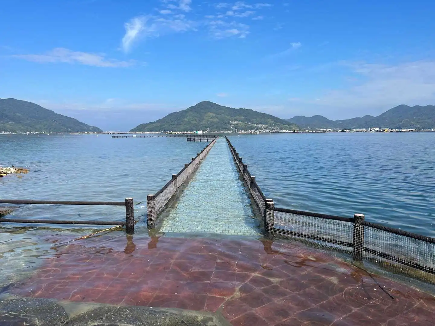 瀬戸内海特有の大きな干満差により、潮が満ちてくると、この遊歩道は水面下へとゆっくり姿を消していきます。足元には透き通った海水が満ち、まるで海の上を歩いているかのような、幻想的な光景が現れるのです。