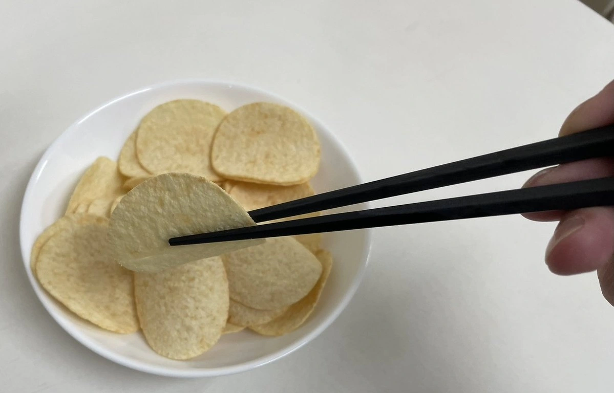 🤔 ポテトチップスを少しだけでやめるのは難しいからな。箸を使えば、食べる手が止まりやすくなるかもしれない。